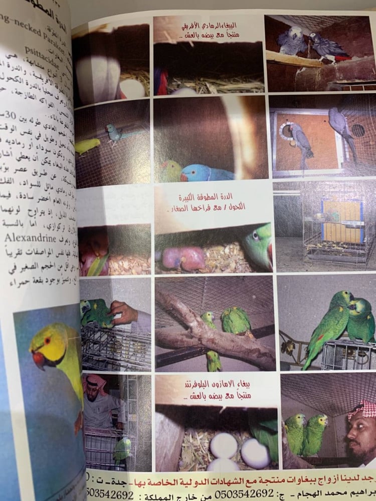 تربية الببغاوات وتكاثرها تأليف عبدالرحمن بن عمر العمودي ورق ثقيل مزود بصور ملونة مخزن لم يستخدم