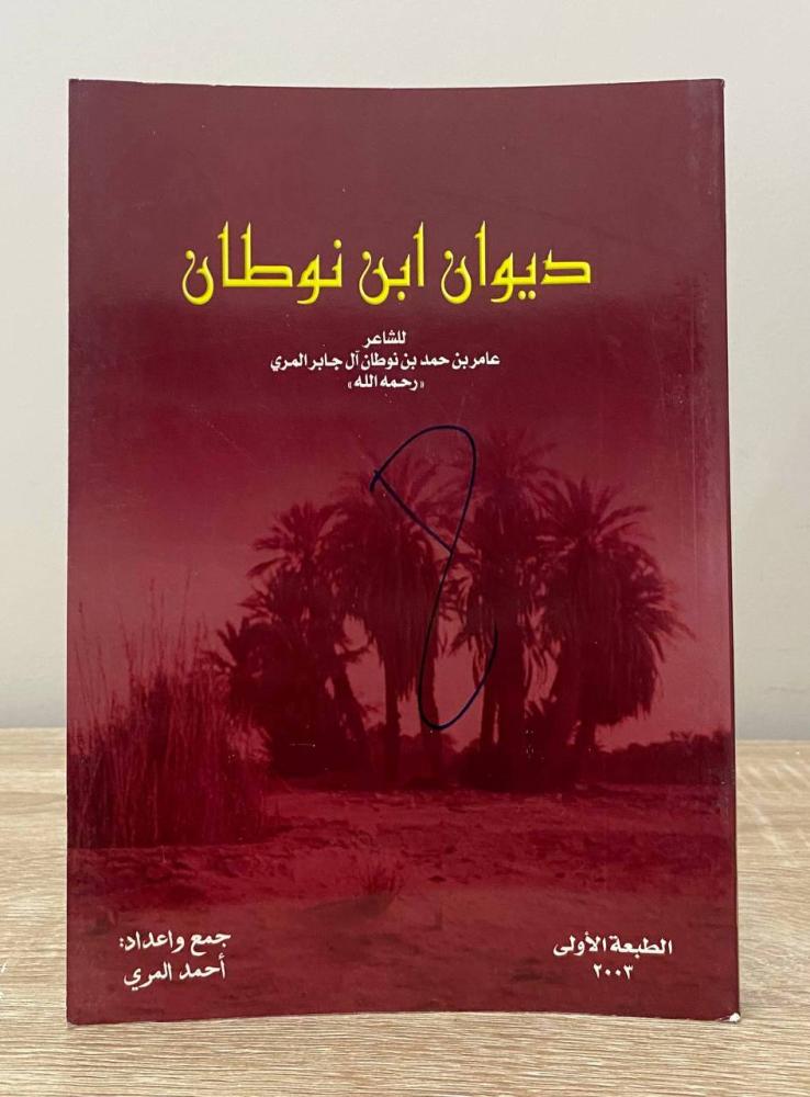 ديوان ابن نوطان للشاعر عامر بن حمد بن نوطان آل جابر المري " رحمه الله " جمع وإعداد: أحمد المري الطبعة الأولى 2003م الصفحات: 365 صفحة